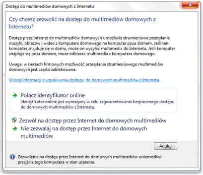 Okno dialogowe Dostęp do multimediów domowych z Internetu